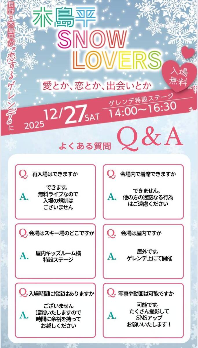 【木島平SNOWLOVER 愛とか、恋とか、出会いとか】に関しまして