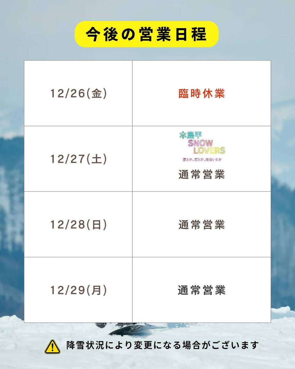 安全にご利用いただけるゲレンデコンディションにはならないと判断し