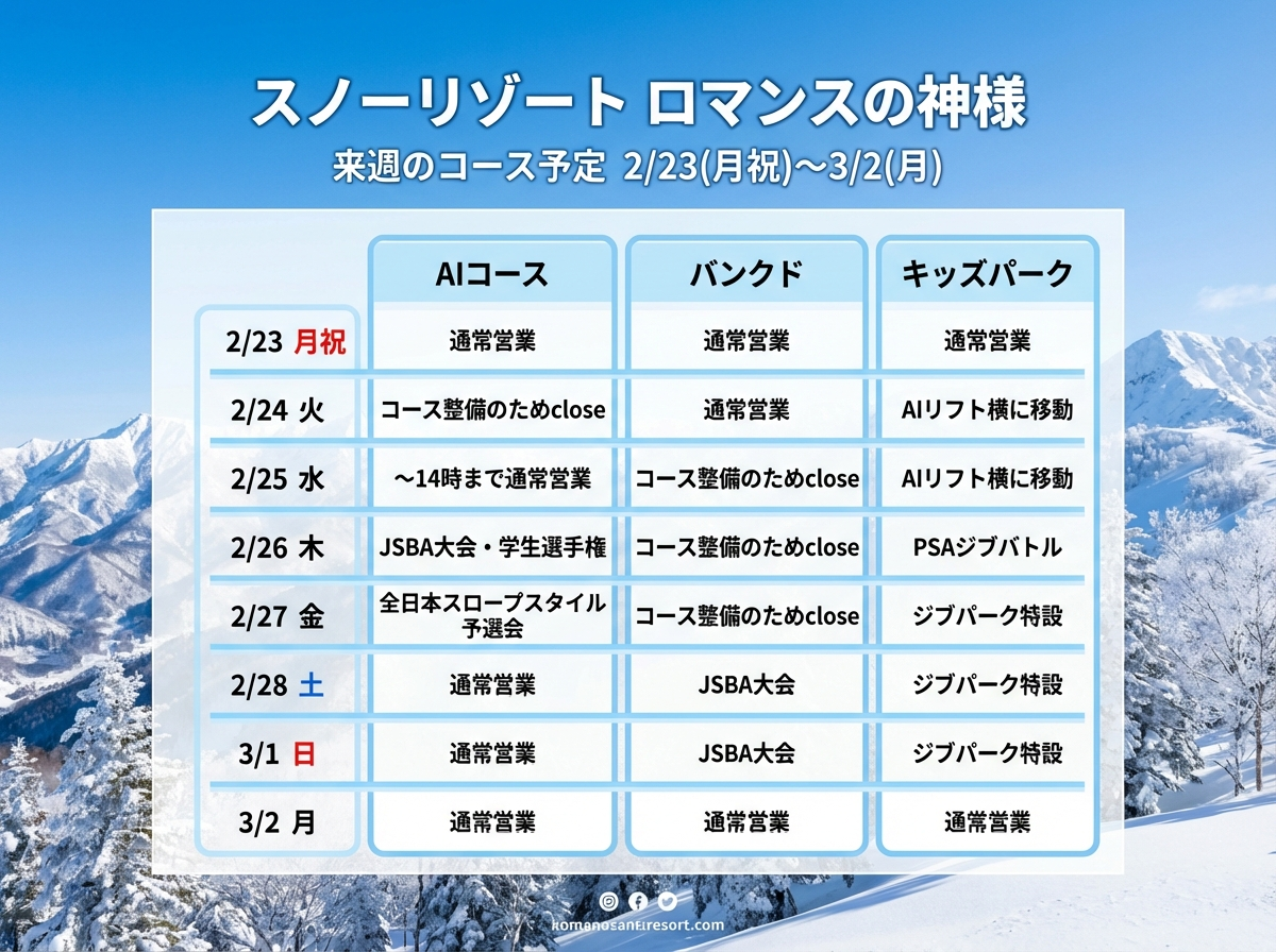 →キッズパークエリアはコース整備のため入れません(雪入れ・整備)